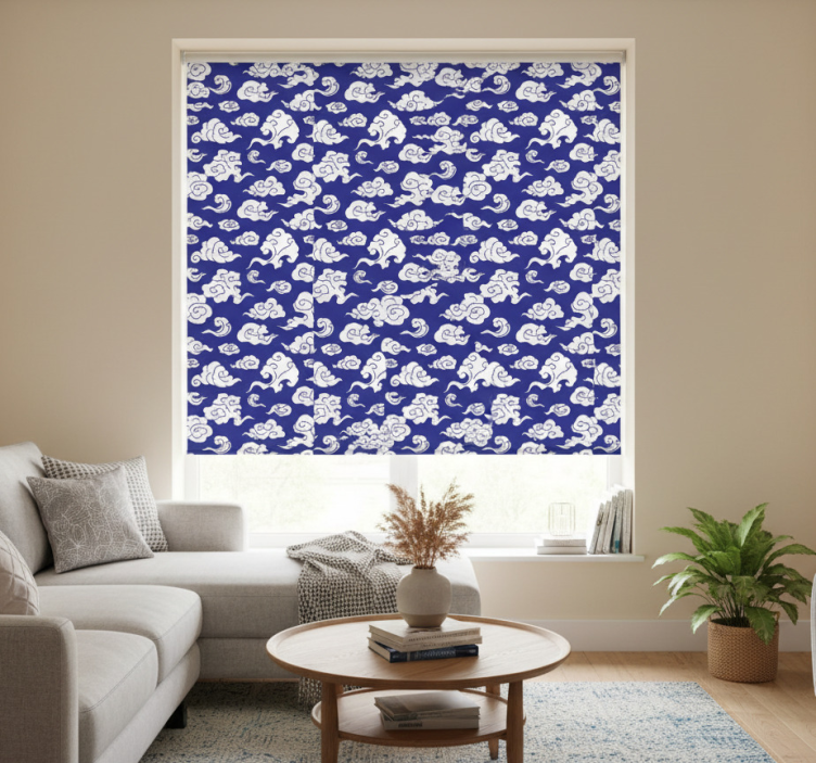 Estor enrollable moderno nubes blancas silueteadas fondo azul