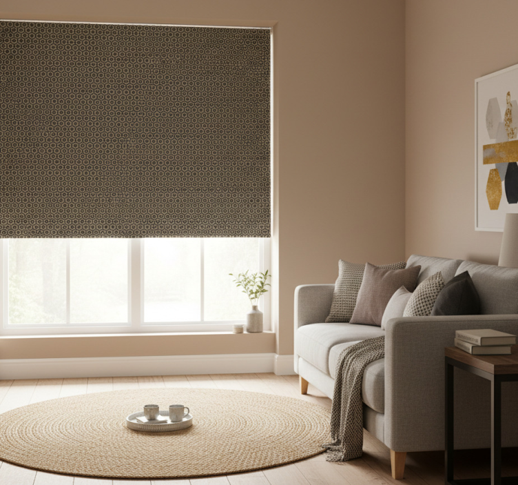 Referencia: E7659Descubre la elegancia y modernidad que aporta el estor enrollable moderno patrón de hexágonos dorados y grises a tu hogar. Este diseño cautivador combina hexágonos dorados y grises en un patrón contemporáneo, creando un ambiente chic y sofisticado. Su apariencia gráfica es ideal para quienes buscan dar un toque innovador y acogedor a cualquier habitación, convirtiéndola en un espacio único y lleno de estilo.