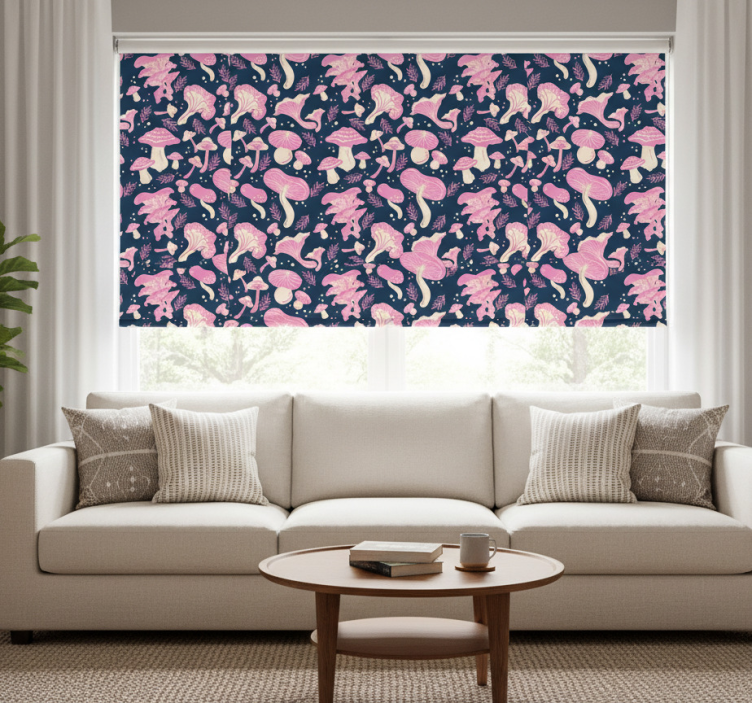 Estor enrollable moderno patrón de hongos rosas