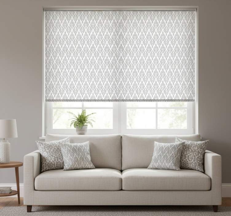 Estor enrollable moderno patrón floral étnico gris