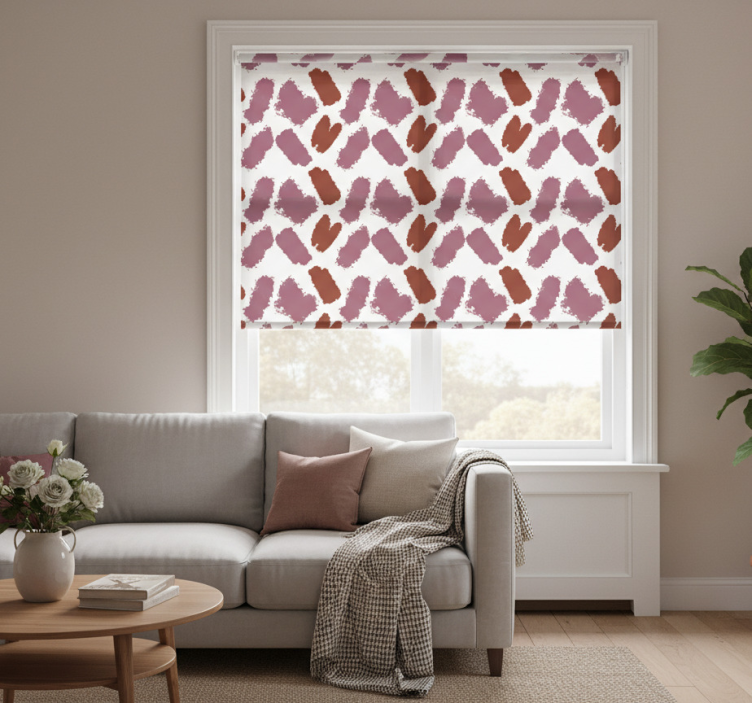 Estor enrollable moderno salpicadura rosa y roja