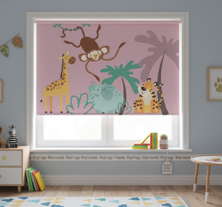 Estor enrollable morado animales de safari coloridos