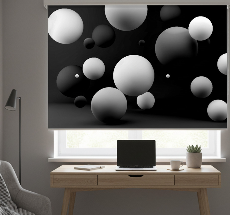 Referencia: E8739Descubre el elegante Estor enrollable negro esferas blancas sobre fondo negro, un diseño que combina la sofisticación del negro con el dinamismo de las esferas blancas. Este estor no solo es un elemento decorativo, sino que también aporta un toque moderno y chic a cualquier habitación. Su fondo negro crea un ambiente acogedor, mientras que las esferas blancas añaden un atractivo visual que cautiva a primera vista. ¡Ideal para quienes buscan un estilo contemporáneo y elegante!