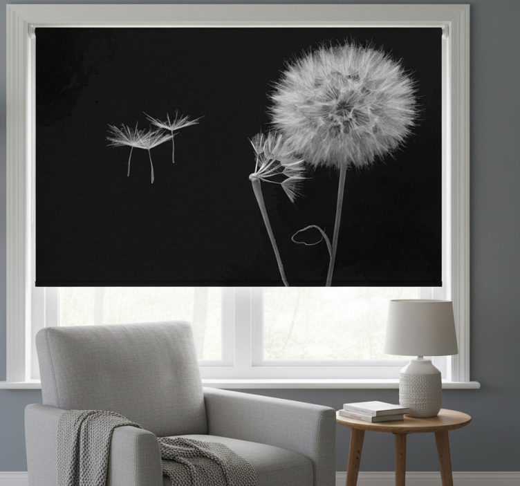 Estor enrollable negro mural de diente de león con semillas