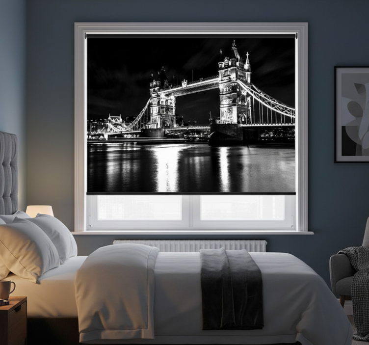Referencia: E8729Descubre el Estor enrollable negro puente de londres de noche, un elegante y sofisticado diseño que captura la esencia de la ciudad. Con un fondo negro intenso adornado por la mágica silueta del icónico puente de Londres iluminado por la noche, este estor no solo embellece tu espacio, sino que también aporta un toque moderno y cosmopolita a cualquier habitación. Su diseño visual es un verdadero deleite para los sentidos, convirtiéndose en el complemento perfecto para tus interiores.