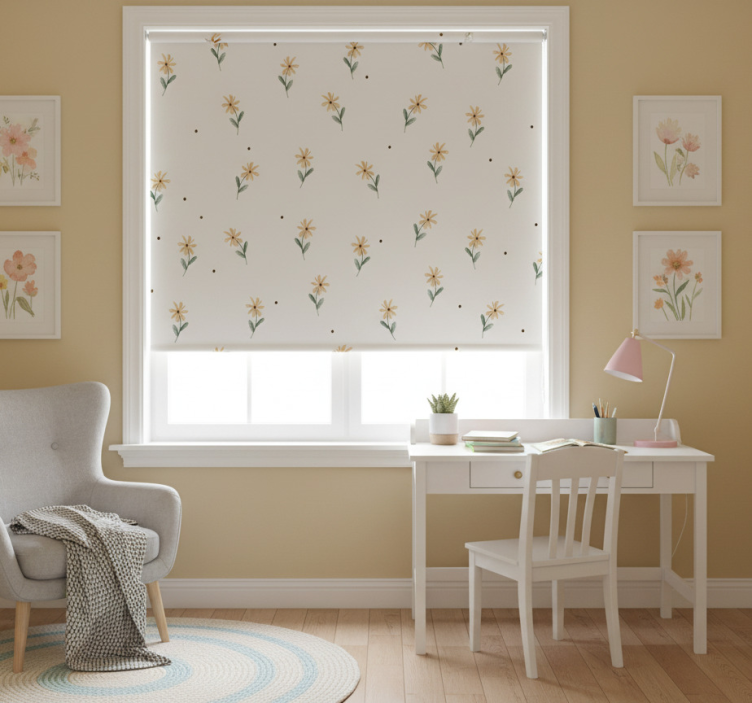 Estor enrollable rosa margaritas amarillas