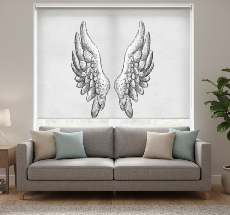 Estor enrollable salón alas dibujadas a mano