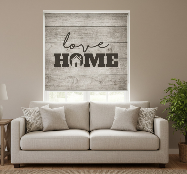 Estor enrollable salón amor en tablones grises 2