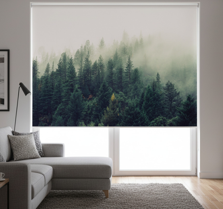 Estor enrollable salón bosque brumoso