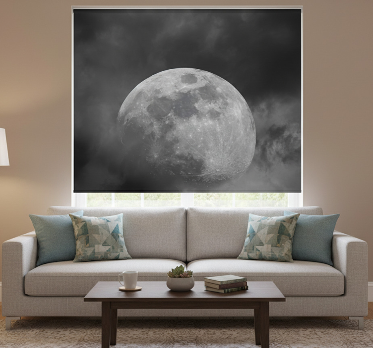 Estor enrollable salón diseño espacial planeta gris