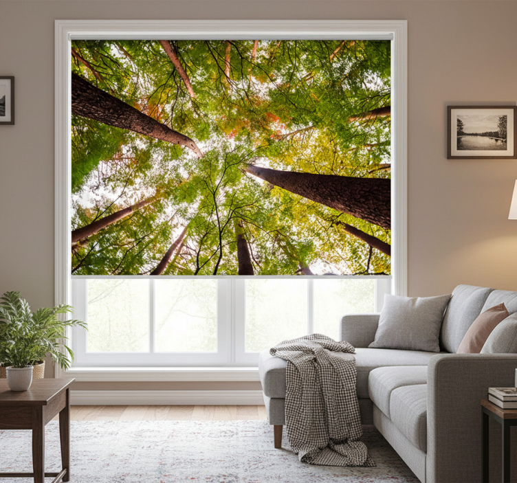 Estor enrollable salón grandes árboles en el bosque