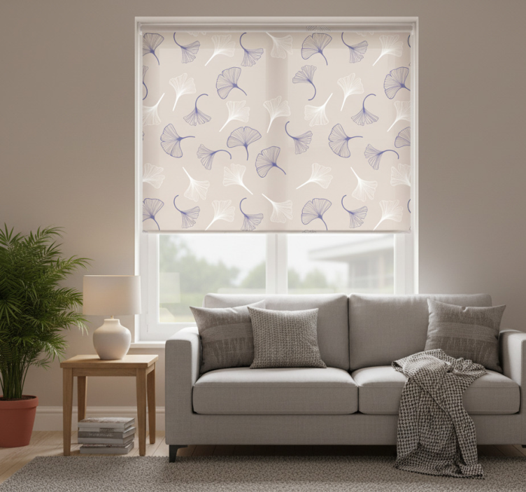 Estor enrollable salón hojas de ginkgo crema