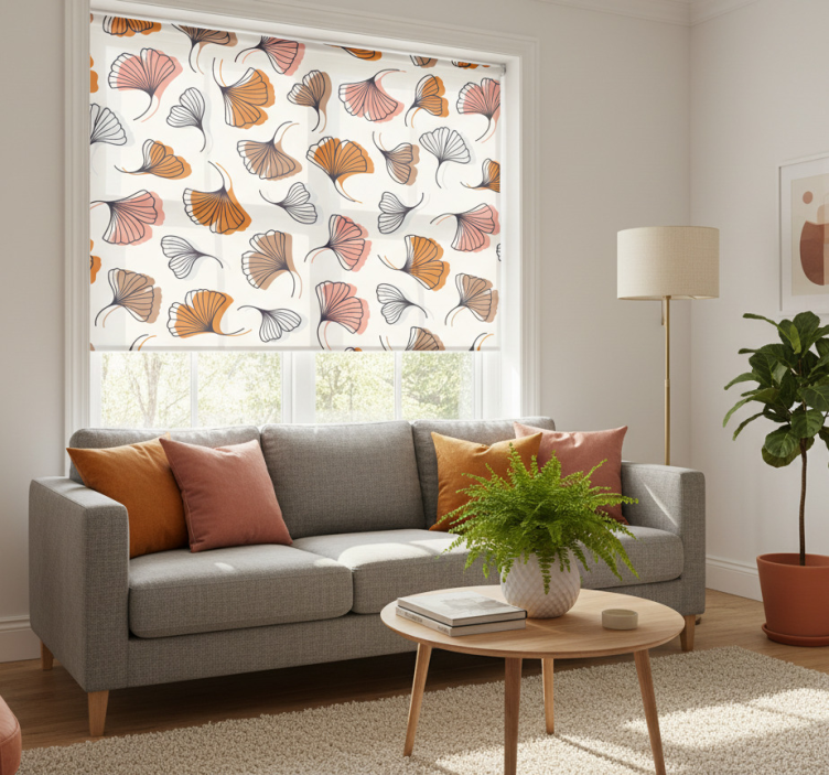 Estor enrollable salón hojas de ginkgo dibujadas
