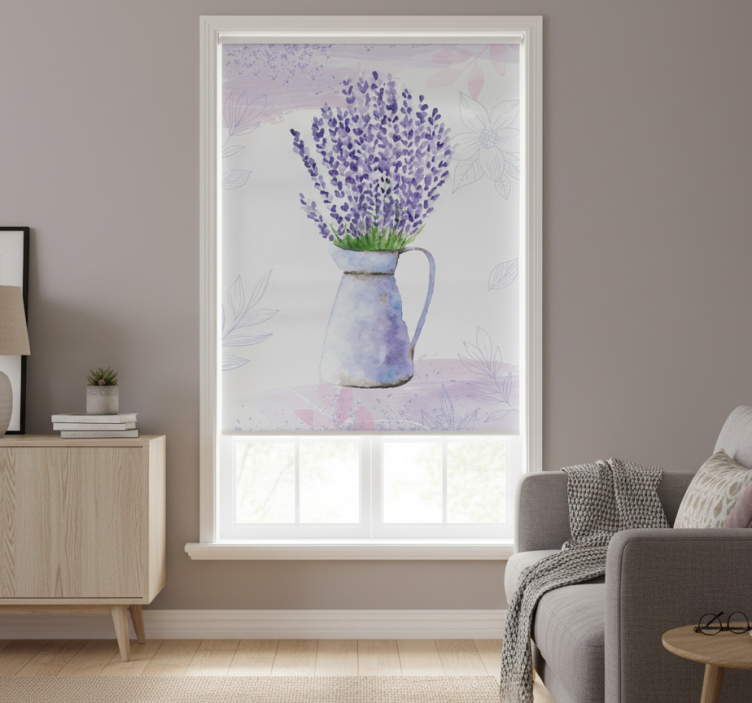 Estor enrollable salón jarrón de lavanda