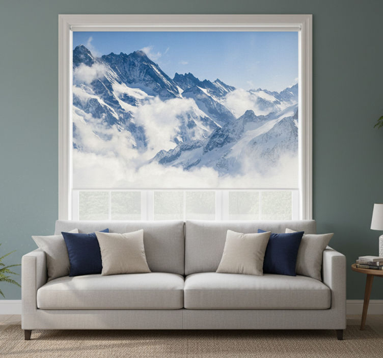 El estor enrollable salón montaña desde la ventana cielo azul es la elección ideal para quienes buscan una decoración que inspire tranquilidad y armonía. Este estor no solo embellece tu espacio, sino que también te permite regular la luz y la temperatura, creando un ambiente perfecto para relajarte o trabajar. Además, su fácil instalación y desmontaje te permitirá mantener siempre tu hogar impecable. ¡Deja que la belleza de la naturaleza entre en tu hogar!