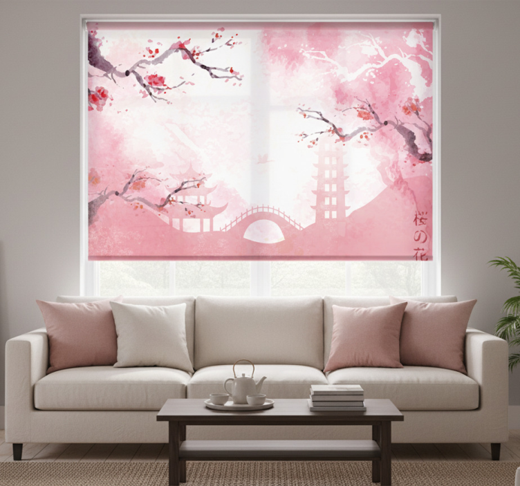 Estor enrollable salón panorama de cerezos en flor