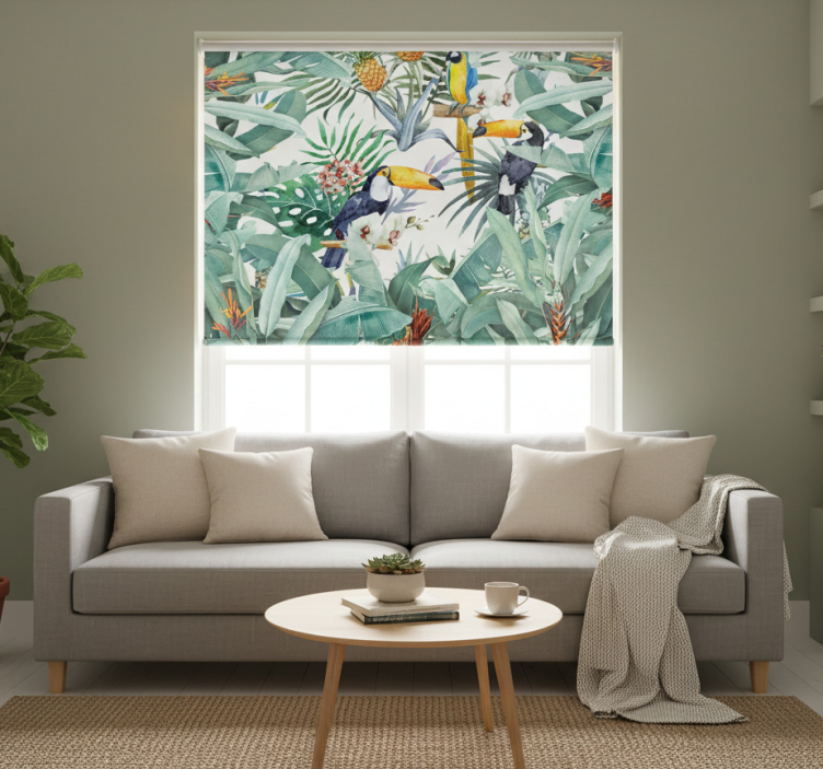 Estor enrollable salón selva pintada