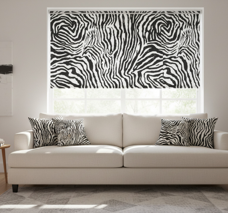 Estor enrollable salón textura cebra