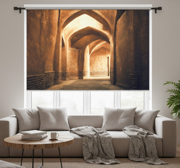 Estor enrollable salón vista 3d atardecer