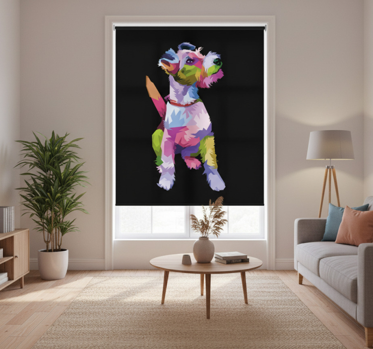 Estor enrollable salón zorra terrier geométrica