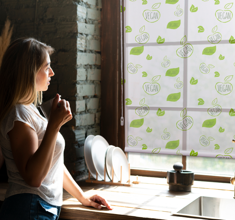 Disponemos de tres materiales (opaco, screen y translúcido) para este estor para cocina vegano 100 %. Los estores opacos bloquean tanto la visualización como la entrada de la luz en la estancia, los estores screen permiten pasar a través la luz exterior, pero limitan la visibilidad desde el exterior hacia el interior y los estores translúcidos dejan pasar la luz del exterior.