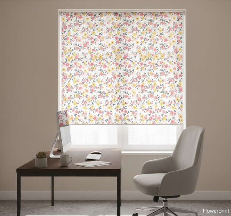 Estores enrollable oficina flowerprint 'ifuru' blanco