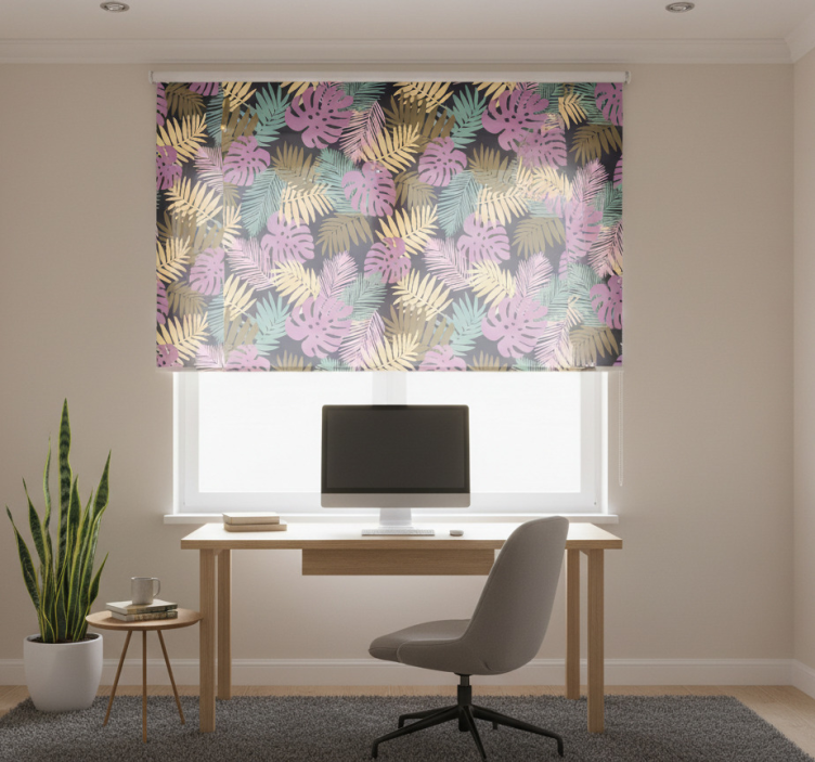 Estores enrollable oficina hojas tropicales verdes y rosas