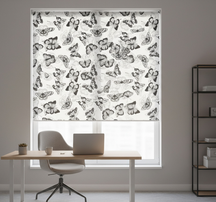 Estores enrollable oficina patrón mariposas delicadas negras