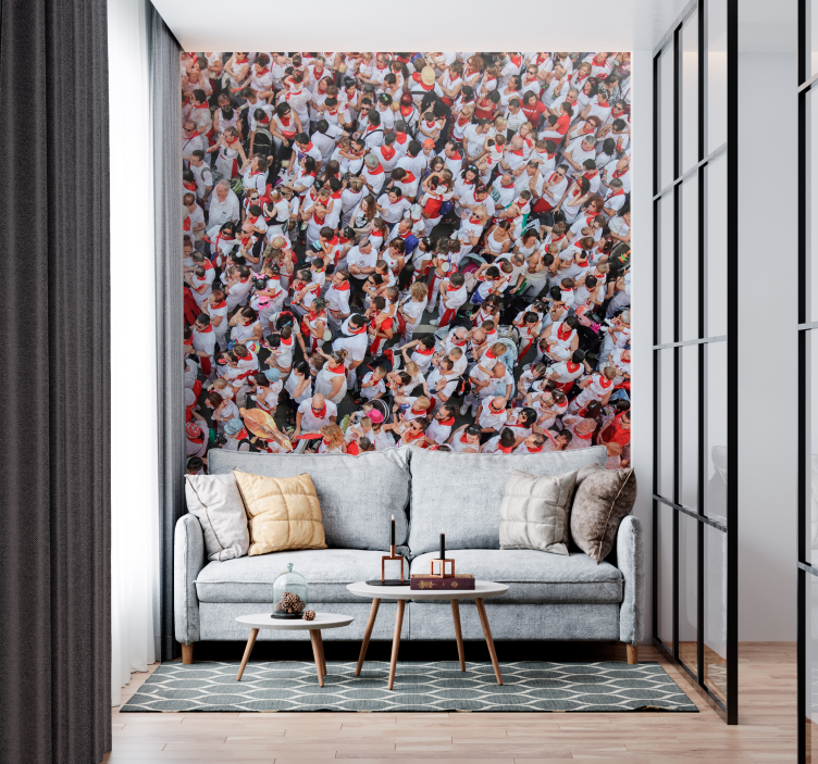 Este Fotomural de gente gente de Pamplona está fabricado en un material Tejido-no tejido, con un gramaje de 170 g / m2 y se puede personalizar con el ancho y alto que se desee. Asimismo, la anchura del rollo es de 50 cm.