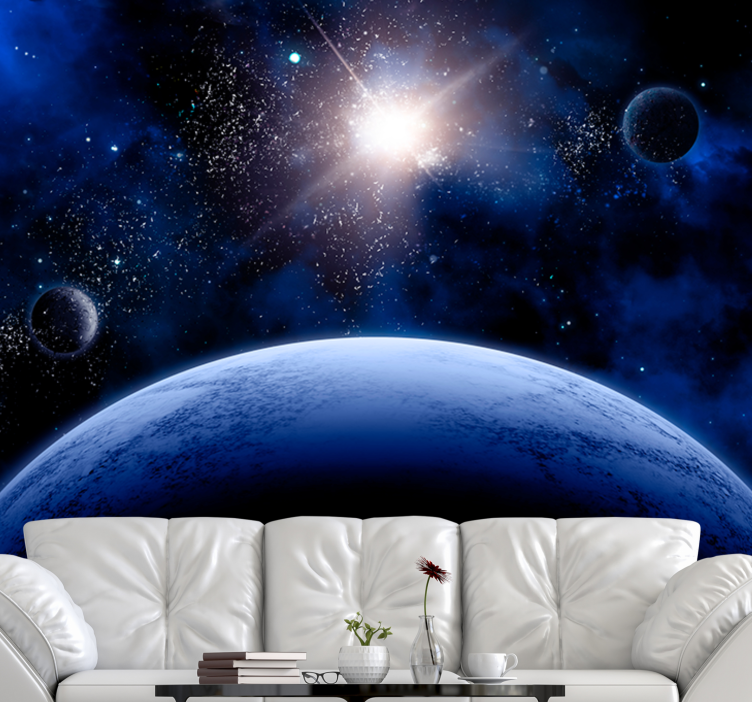 Transforma tus espacios con el Fotomural espacio perspectiva orbital celestial, un diseño cautivador que evoca la inmensidad del cosmos. Con planetas vibrantes, un fondo estrellado y la calidez de los rayos de sol, este fotomural te transporta a un universo lleno de maravillas. La galaxia se despliega ante ti, ofreciendo un espectáculo visual que revive la curiosidad y la imaginación en cada rincón de tu hogar.
