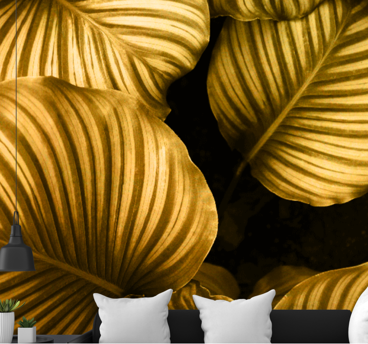 Transforma tu espacio con nuestro Mural de pared flores patrones de hojas doradas, un diseño vibrante que evoca la naturaleza tropical. Con hojas doradas texturizadas, este mural es una explosión de color y vida que aportará un toque fresco y elegante a cualquier habitación. ¡Aprovecha la belleza de la naturaleza en tu hogar!