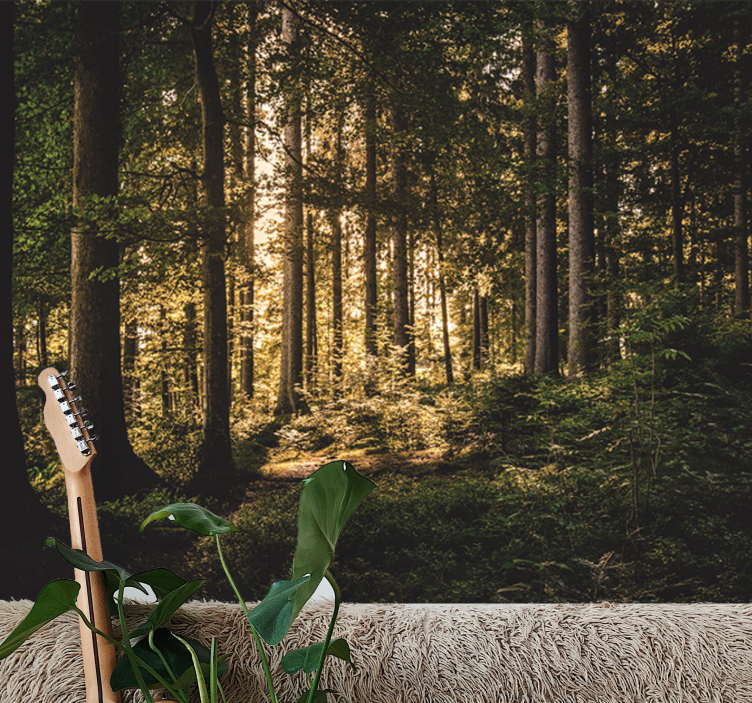 Sumérgete en un mundo de naturaleza con nuestro papel pintado bosque camino brillante del bosque. Este diseño cautivador presenta una selva vibrante, donde los árboles se elevan majestuosamente y la luz de sol filtra a través del follaje, creando un paisaje de ensueño que transforma cualquier espacio en un refugio natural. La combinación de colores mate resalta cada detalle, aportando vida y frescura a tus paredes.