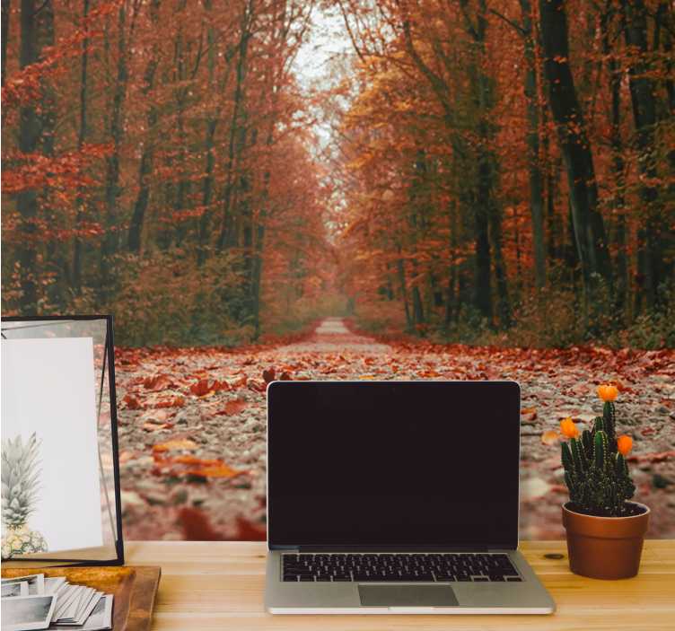 Imagina un rincón de tu hogar transformado por el papel pintado bosque ruta del sendero otoñal, donde la belleza del otoño cobra vida a través de un camino que se adentra en un bosque lleno de hojas caídas y una naturaleza vibrante. Este diseño gráfico capta la esencia del otoño, creando una atmósfera de profundidad y serenidad que invita a pasear por un sendero imaginario, donde cada paso es una celebración de la estación más mágica del año.