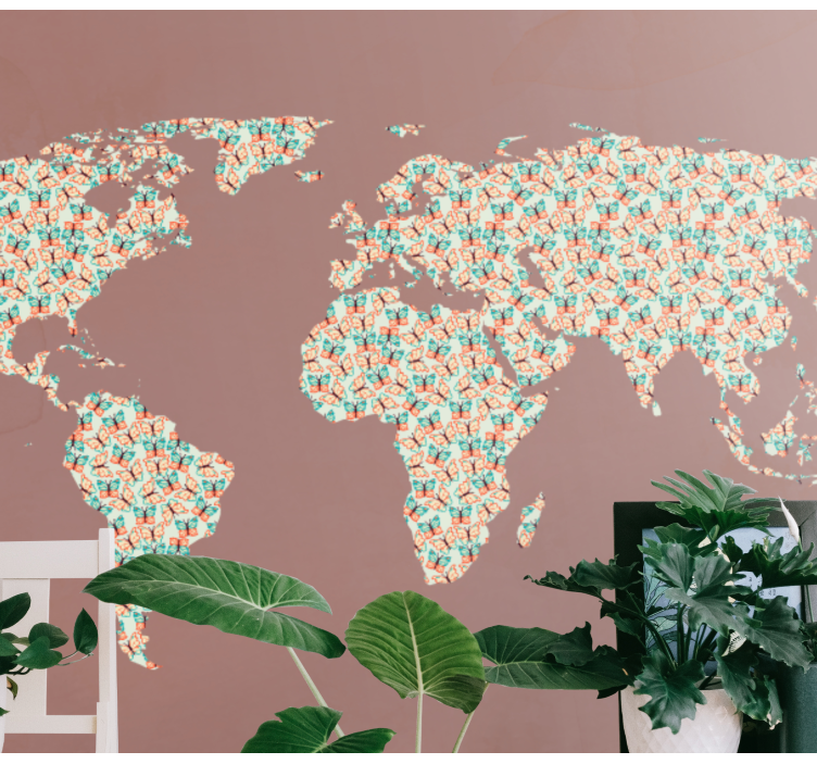 Descubre el encanto de nuestro Papel pintado mapamundi patrón de mapa mundial, que combina un hermoso diseño de mariposas y un detallado mapa del mundo. Esta ilustración vibrante y colorida transforma cualquier espacio en un lugar lleno de vida y aventura. El patrón meticulosamente creado destaca las mariposas volando sobre continentes, haciendo que cada rincón de tu hogar cuente una historia de exploración y belleza.