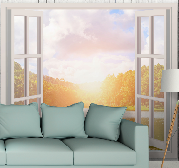 Imagina despertar cada mañana con la vista de un amanecer sobre un sereno lago, rodeado de un bosque vibrante y árboles que parecen susurrar historias del pasado. Nuestro papel pintado naturaleza amanecer sobre el lago captura este mágico paisaje a través de un trampantojo que transforma tus paredes en ventanas hacia un mundo de belleza natural. Con su diseño cautivador, este papel pintado te invita a disfrutar de cada día como si estuvieras en un retiro en medio de la naturaleza.