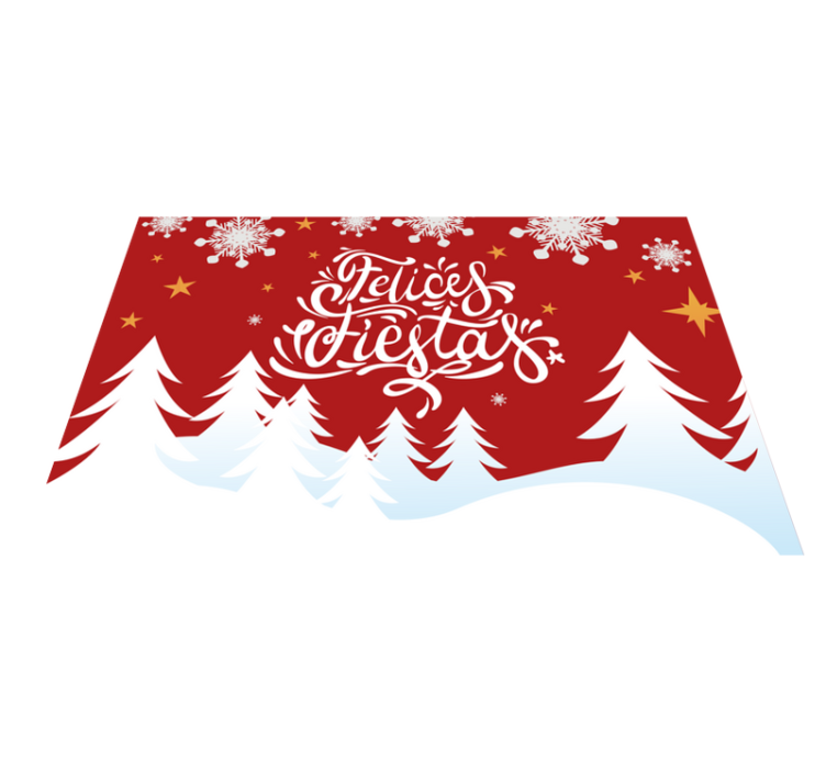 Fantástico mantel individual formado por un bosque de abetos de Navidad, varias estrellas y copos de nieve y el texto "Felices Fiestas" en color blanco y dorado sobre un fondo rojo. Este mantel individual original es ideal para decorar tu mesa estas fiestas y felicitar la Navidad a todos tus invitados. Puedes adquirir este mantel individual navideño en las medidas de 45 x 30 cm y elegir el pack que desees (pack de 1, 2, 4, 6 u 8)