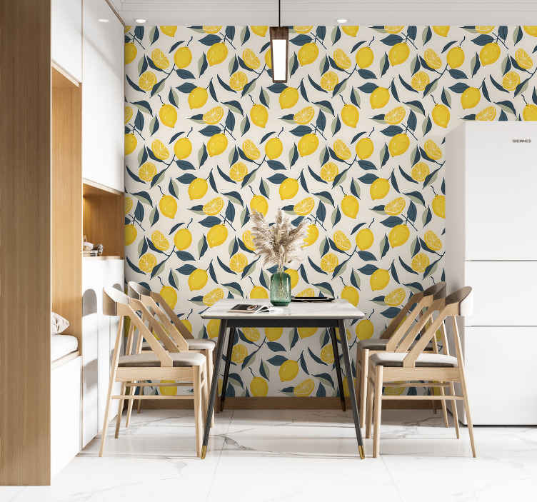 Referencia: P6170El papel pintado amarillo con patrón de limón es perfecto para darle un toque fresco y alegre a cualquier habitación. Con un diseño gráfico que destaca la presencia de frutas cítricas como el limón, este papel tapiz es ideal para quienes buscan una decoración vibrante y llena de vida.