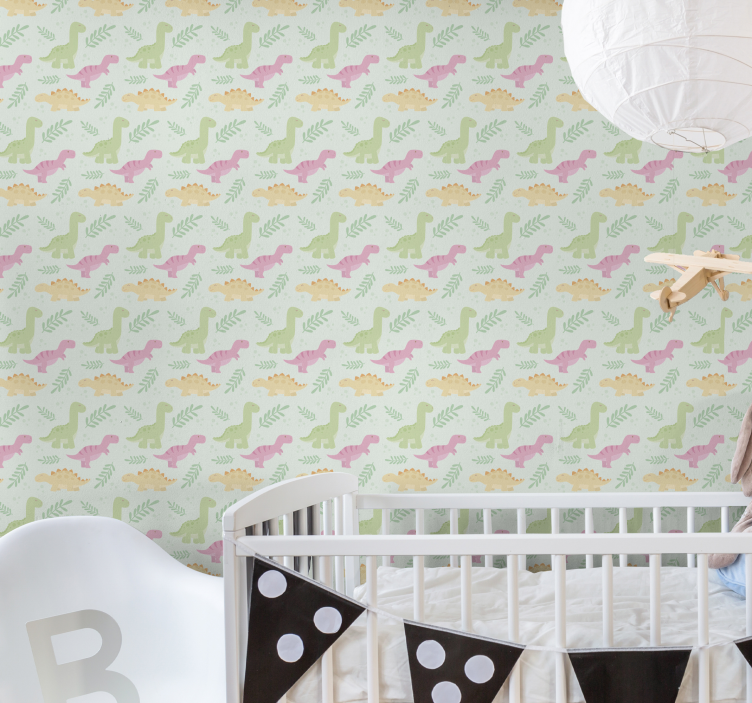 El papel pintado dinosaurios patrón de dinosaurio pastel es perfecto para la decoración de habitaciones infantiles. Con un diseño de dinosaurios en tonos pastel, este papel pintado es juguetón, lindo y perfecto para crear un ambiente divertido para los niños. El patrón de dinosaurio en dibujos animados le da un toque único a cualquier habitación.