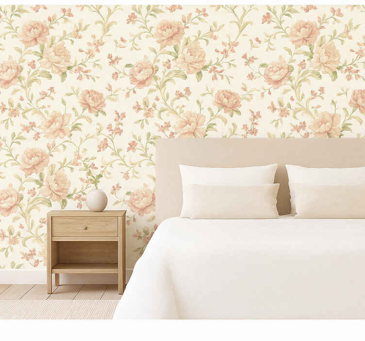 Papel pintado dormitorio matrimonio flores vintage rosa claro