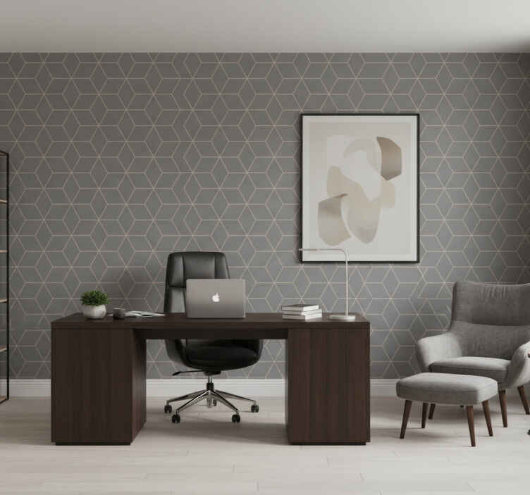 Papel pintado oficina patrón hexagonal gris geométrico