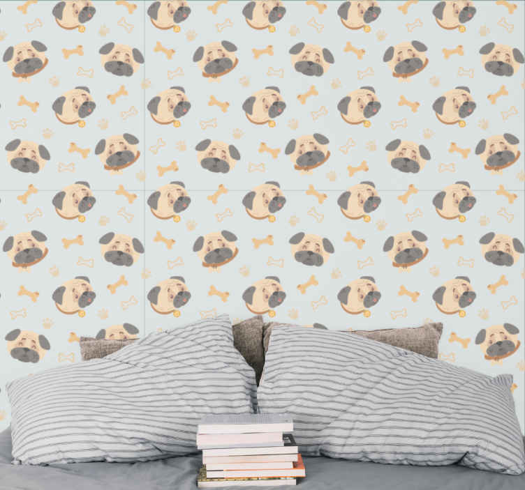 Referencia: P7694Captura una atmósfera de encanto juguetón con un patrón que presenta caras de cachorros estilizadas y huesos caprichosos. El diseño crea un espacio amigable y acogedor, perfecto para amantes de los perros que buscan un toque de estilo inspirado en mascotas.