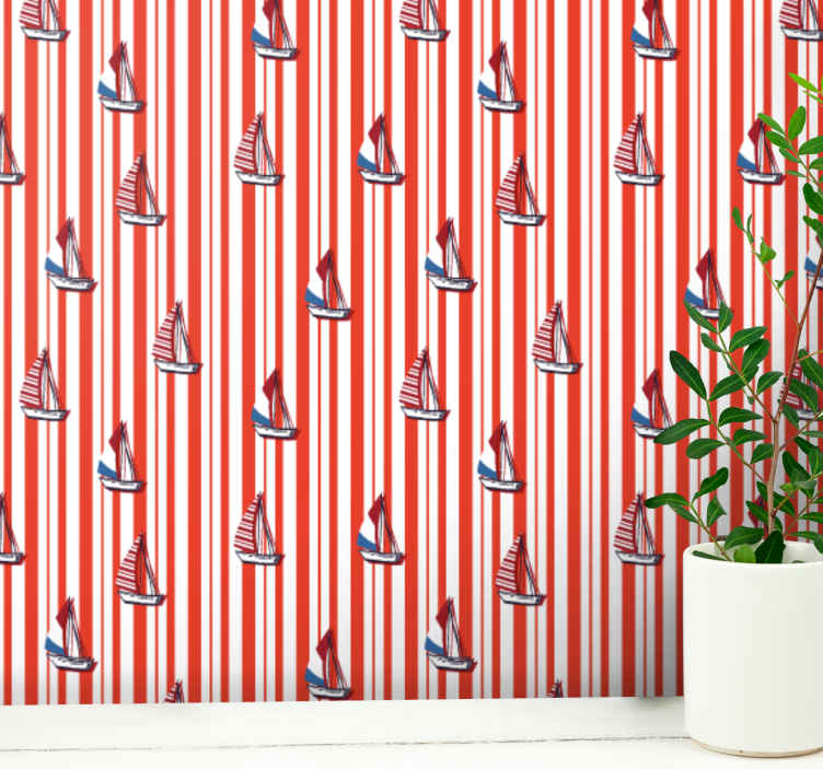 Descubre el fascinante papel pintado rayas verticales patrón de velero rojo, una obra maestra que captura la esencia del mar y la aventura. Con un diseño que incluye veleros en un vibrante color rojo y elegantes rayas que evocan el espíritu marítimo, este estampado es perfecto para aquellos que buscan añadir un toque náutico y lleno de vida a sus espacios. Los marineros y veleros se entrelazan en un patrón que transforma cualquier habitación en un refugio de alegría y frescura.