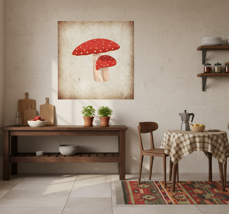 Transforma tu espacio con el Poster cocina ilustración de hongo amanita, una pieza decorativa que inspira creatividad y alegría. Este póster no solo embellece las paredes, sino que también aporta un aire fresco y natural a tu cocina, convirtiéndola en un lugar donde la gastronomía y el arte se encuentran. ¡Deja que esta ilustración hable de tu estilo personal y brinde un ambiente acogedor a tus reuniones!