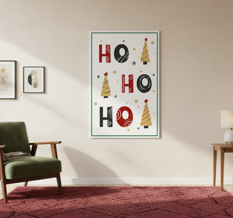El Poster de navidad poster de navidad diseño de texto ho ho ho navideño es la pieza perfecta para añadir un toque festivo a tu decoración. Imagina cómo iluminará tu sala de estar, creando un ambiente cálido y acogedor que hará sonreír a todos tus invitados. Este poster es ideal para transmitir alegría y espíritu navideño, convirtiendo cualquier espacio en un mágico rincón de celebración. ¡No hay mejor manera de dar la bienvenida a la temporada navideña!