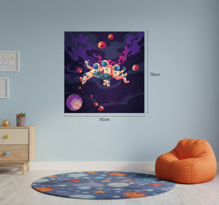 Para colocar tu lámina decorativa habitación infantil, te recomendamos usar cinta adhesiva de doble cara en la parte posterior del poster habitación infantil astronautas de dibujos animados. También puedes optar por enmarcarlo para un acabado más elegante. Asegúrate de pegar las tiras de cinta firmemente durante 10 segundos. Alternativamente, las chinchetas o el blu-tack reutilizable son excelentes opciones para una aplicación fácil y divertida.