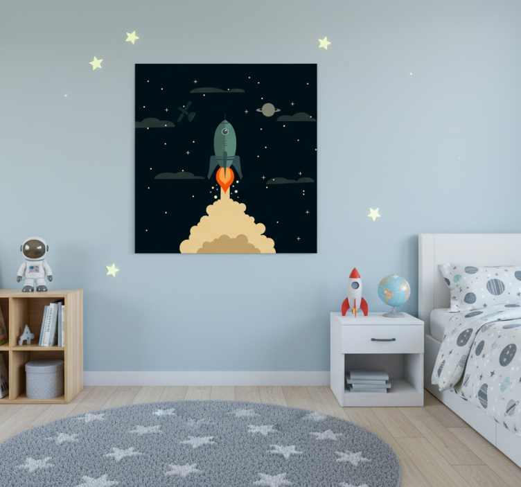 Para disfrutar al máximo de tu Lámina decorativa habitación infantil poster habitación infantil cohete de dibujos despegando, te recomendamos usar cinta adhesiva de doble cara en la parte posterior. Al colocarlo, asegúrate de sostener cada tira firmemente durante 10 segundos. También puedes optar por enmarcarlo o utilizar chinchetas y blu-tack reutilizable para una aplicación sencilla y divertida. ¡Decorar nunca fue tan fácil y emocionante!