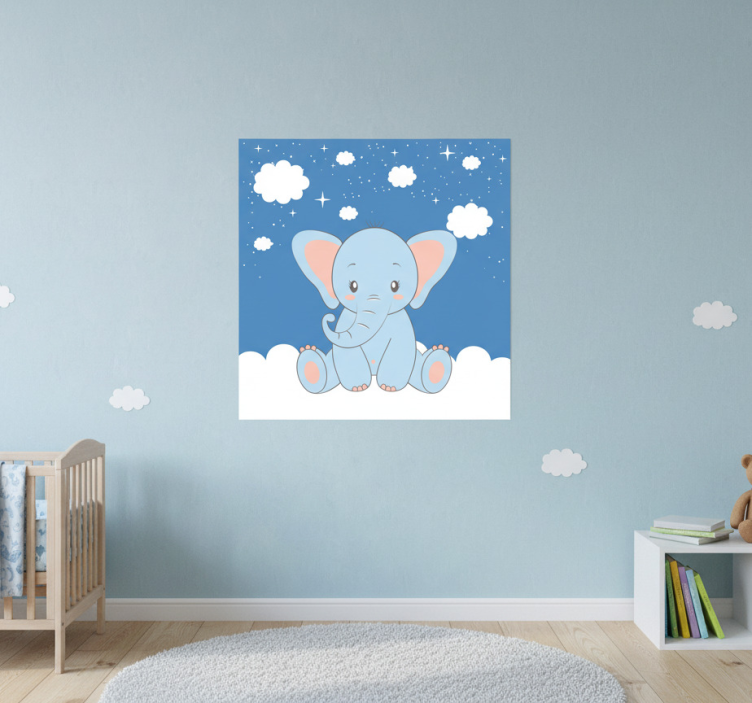 Poster habitación infantil elefante azul bebé dibujo