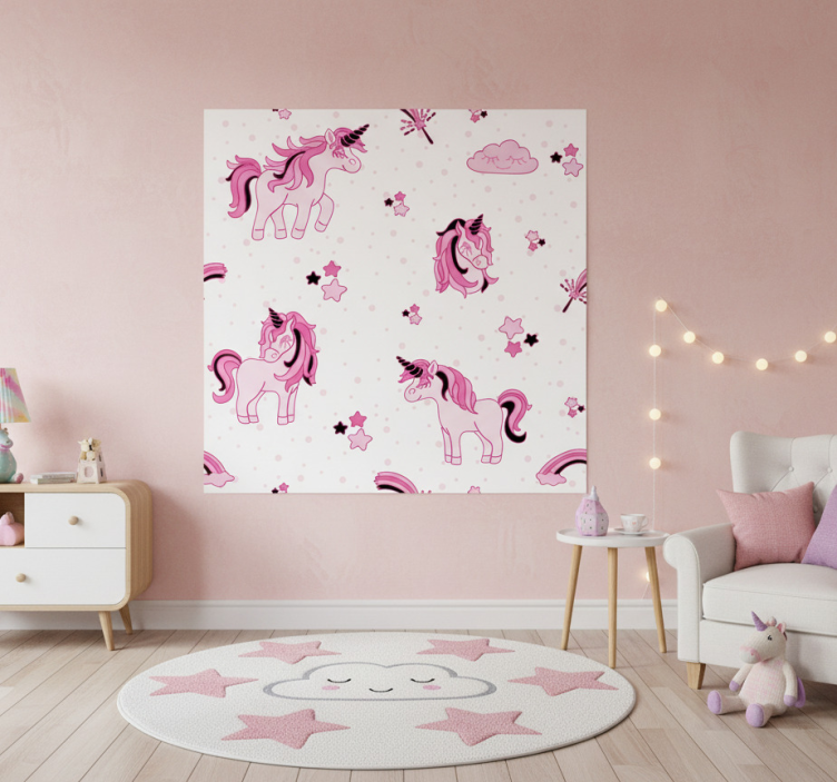 Referencia: G915El Poster habitación infantil mundo de unicornios doodle es una explosión de color y fantasía que transformará cualquier espacio infantil en un mundo mágico. Su diseño presenta encantadores unicornios en un estilo doodle, acompañados de nubes suaves y estrellas brillantes, que invitan a la imaginación y la creatividad. Este poster, con su acabado semimate y alta intensidad de color, es perfecto para dar vida a la habitación de los más pequeños.