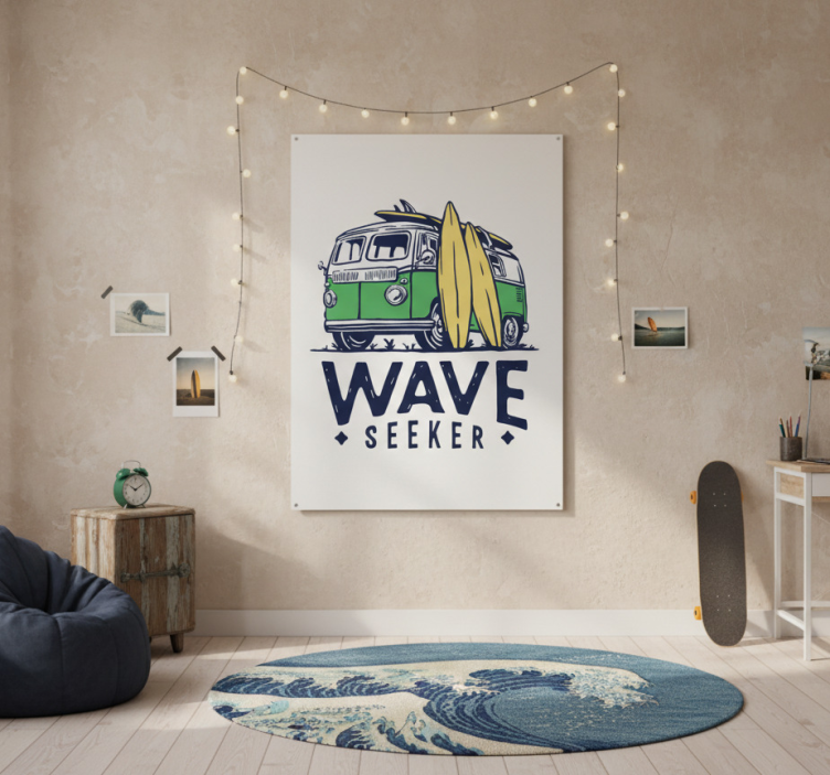 Transforma el espacio de tu joven aventurero con este poster habitación juvenil furgoneta surfero. No solo es una pieza decorativa, sino que también inspira un sentido de libertad y creatividad. Al colgarlo en la pared, se crea un ambiente que fomenta la imaginación y la pasión por la aventura, convirtiendo cualquier habitación en un refugio lleno de energía positiva y buen gusto.