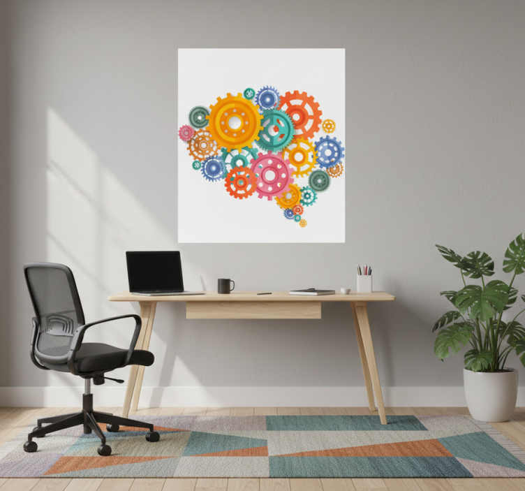 Poster oficina engranajes de colores en forma de cerebro